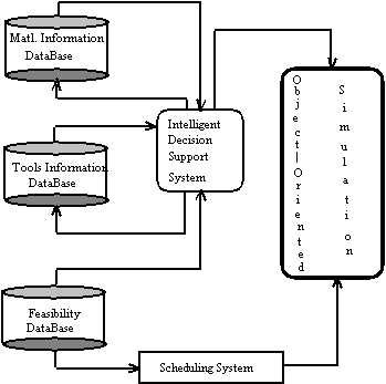In this system, a simulation continues to evolve as long as new data become available. Although objects such as demands, parts, processPlan and machinecell exist independently, they communicate with each other through the message-passing utility inherent within the environment. This allows dynamic responses to change during scheduling periods and the use of schedule improvement or tuning techniques. During execution, an initial schedule is developed based on the process plan, demand and machine requirements. After all of the required jobs have been scheduled, schedule evaluations are carried out to determine the next action to be taken by the simulation system. If the schedule developed is found to be feasible and optimal, the simulation process is terminated and the results presented. Otherwise, the System Improvement module is called upon to fine-tune the schedule.