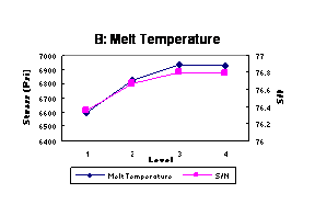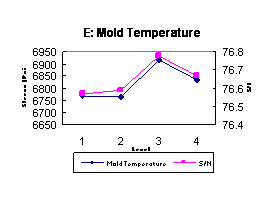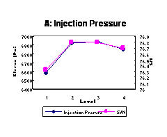 The Taguchi Parameter Design provides a very efficient and effective way to study the effects of inner control factors (processing parameters) and outer noise-factors (temperature) on the tensile strength of injection molded products. The Taguchi Parameter Design also provides a tool to determine optimal parameter settings for tensile strength.
